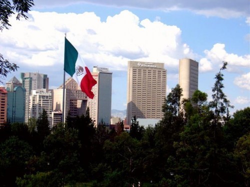 Ahí, a lo lejos, en el campo Marte, iluminada en medio de la obscuridad de la noche, ondea en todo su esplendor la bandera de México.